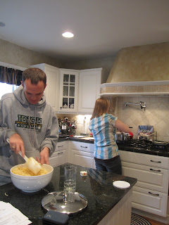 The only step left was for Kevin and me to fry up the pancakes while the stew was in the oven. He was a really great help. So was everyone else in the family.